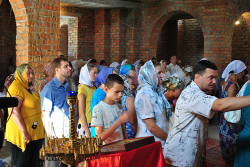 The parishioners united while a solid prayer and were able to touch the sacred objects. Christians believe that touching to the sacred objects heals of mind and body illnesses, helps to get stronger spirit, heals women's diseases including infertility.